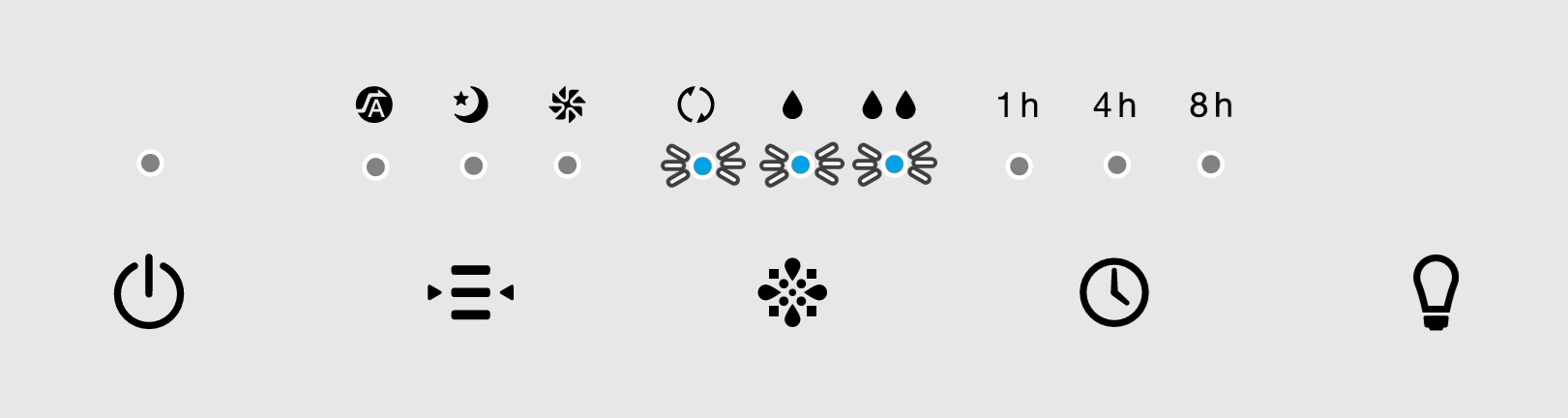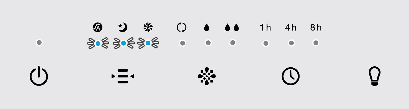 ①運転モード「自動」+「ナイト」+「急速」インジケーターが点滅している